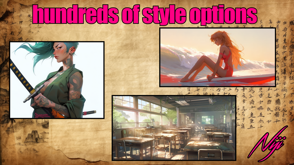Introducing Midjourney Niji 5 - AI Anime Art Style Guide, a comprehensive resource designed to assist you in mastering the art of AI Anime & Manga Art. With this guide, you will learn to integrate correct Niji Style (default, cute, expressive, scenic), hundreds of anime styles, eras (retro, 80s, 90s), manga authors, characters, titles, environments, artistic mediums - ready to integrate to your prompts. And you will learn how to create character sheets for consistent looking characters.